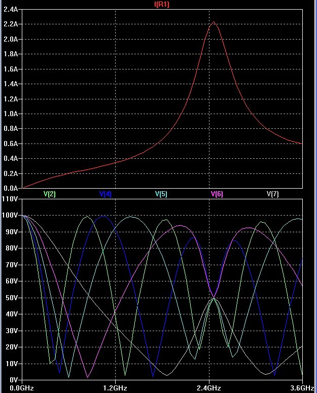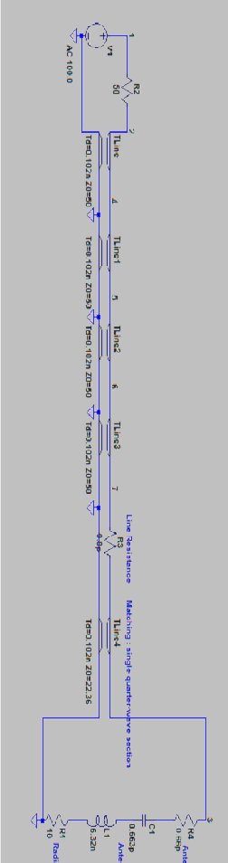 | Fig 1 . Layout of the RF system. It simulates transmission lines, matching tuners and antennas. It is the layout from the free version of SPICE , LTSpice from Linear technology .