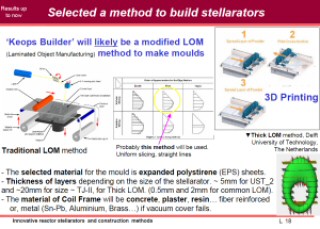 One of the tasks to be done is to decide and implement the best 3D method to produce stellarators and tokamaks by 3D printers